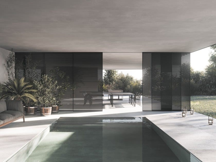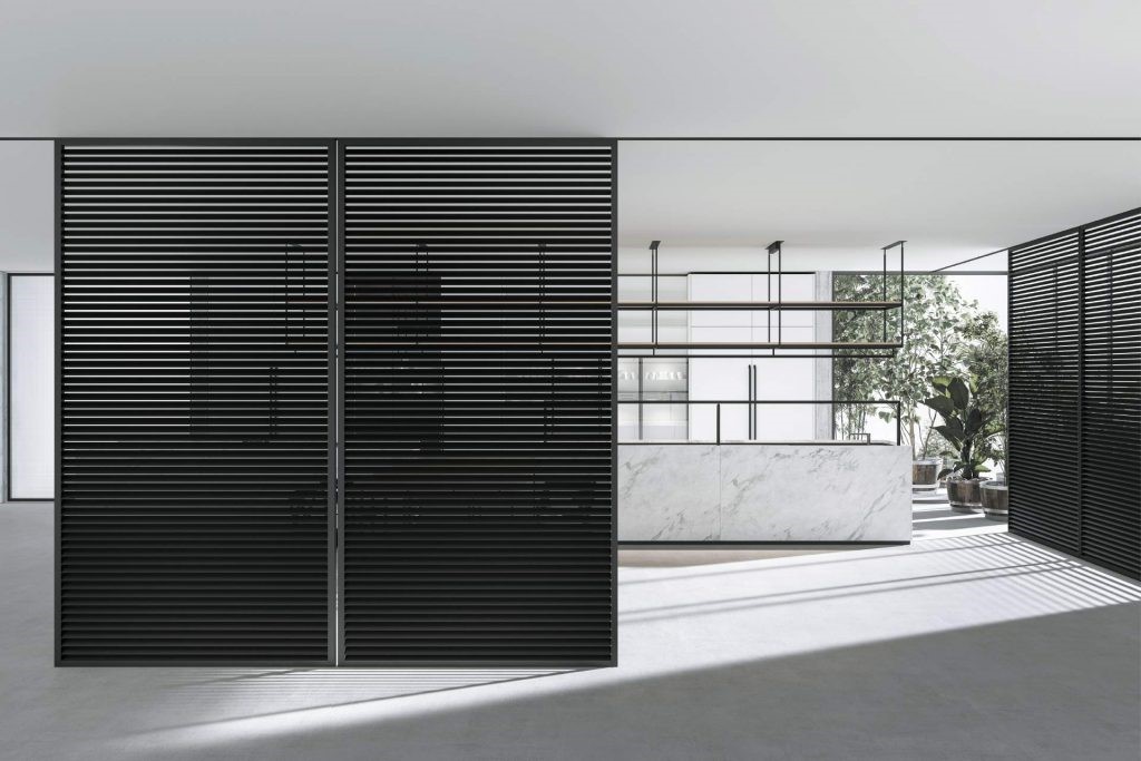 Il risultato è un’anta che, se inserita su una parete materica, diventa parte integrante dell’architettura, una vera e propria porzione di muro che si apre sullo spazio circostante.