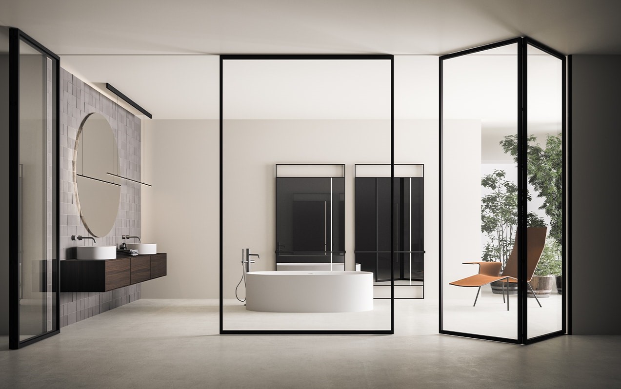 La collezione Mitica si contraddistingue per la sua estetica rigorosa data dal profilo in alluminio che ospita il vetro centralmente e dalla geometria del telaio dell’anta che è realizzato con montanti da 18×36 mm e traversi da 36×36 mm. Grazie all’alta tecnologia costruttiva e alla storicità del prodotto le porte Mitica sono disponibili in tutte le tipologie di apertura.