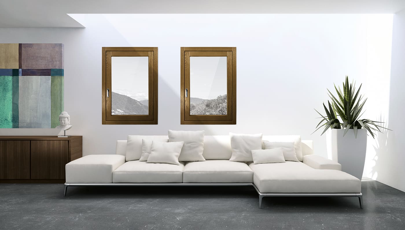 Le finestre in legno/alluminio uniscono la naturalezza e il comfort del legno sul lato interno, con la protezione dagli agenti atmosferici assicurata dal guscio di alluminio sul lato esterno.