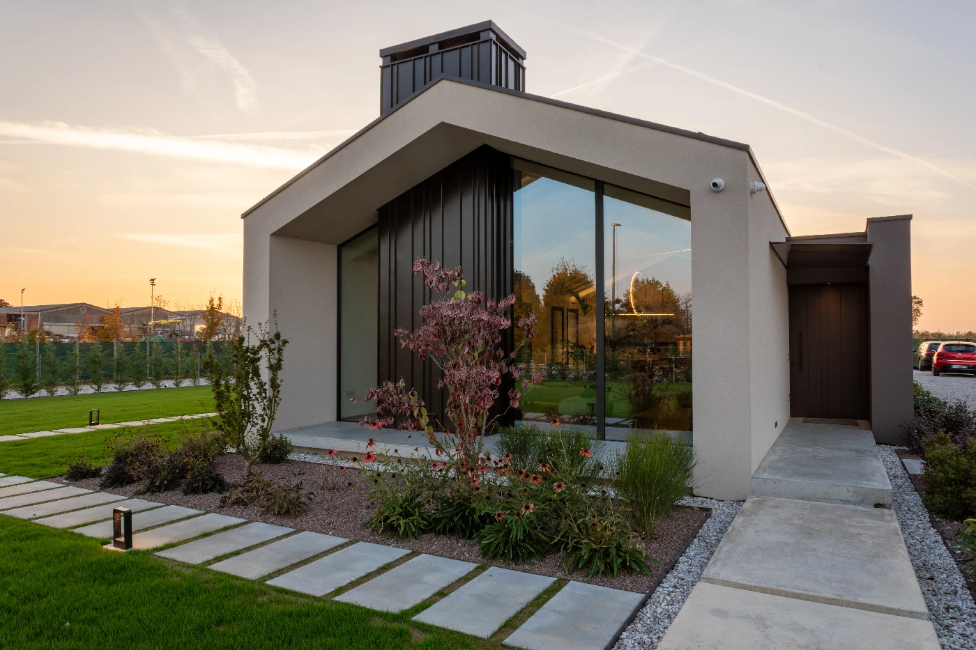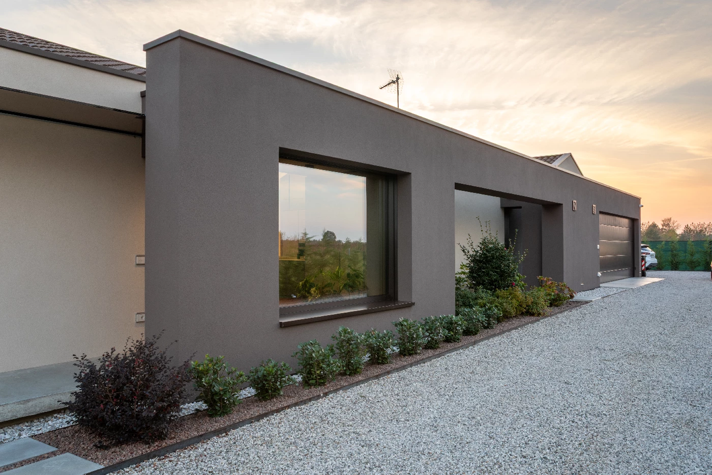 Il progetto nasce a Borgoricco, nel cuore della campagna veneta, un luogo dove lo sguardo può ancora muoversi libero tra campi aperti e linee orizzontali. Qui è stata immaginata una residenza che sostituisce il vecchio edificio esistente, dando vita a un’abitazione contemporanea, semplice nelle forme e accogliente negli spazi, capace di inserirsi nel contesto con naturalezza.