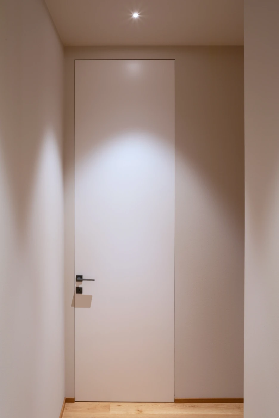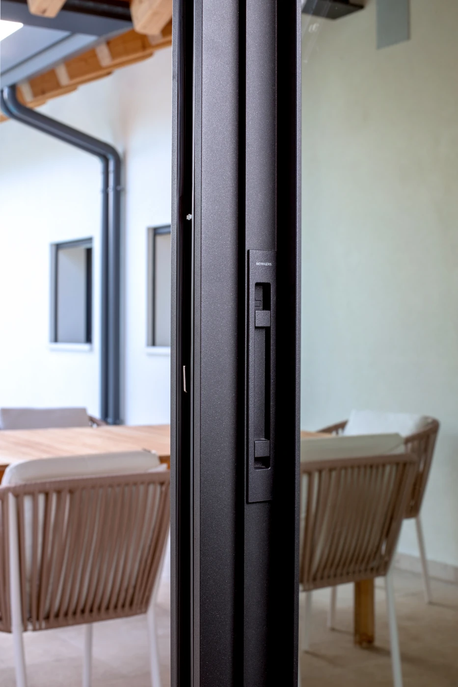 Tutti gli elementi partecipano a creare un equilibrio tra interno e esterno: la recinzione perimetrale fronte strada ad esempio è stata arretrata per creare una barriera verde caratterizzata da essenze sempre verdi di medie dimensioni, le alberature e le essenze arboree che delimitano lo spazio interno privato sono frutto di uno studio approfondito, il tutto per mitigare il più possibile il nuovo fabbricato con l’ambiente circostante.