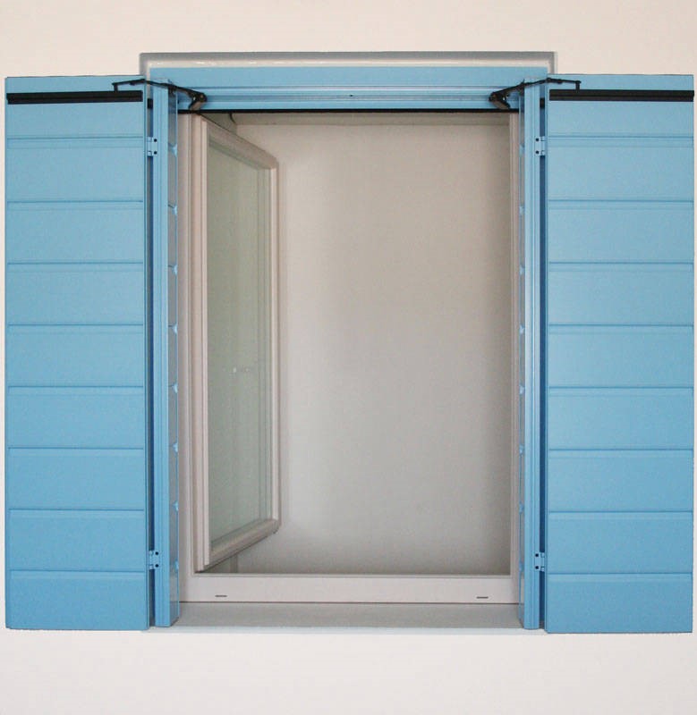 Gli scuri alla padovana in alluminio coibentato sp 37 mm sono pensati per chi ama la tradizione. La singola anta si scompone in due ante unite con cerniere a scomparsa.
